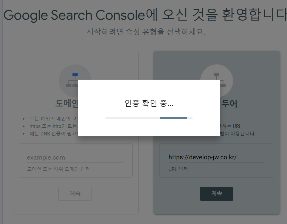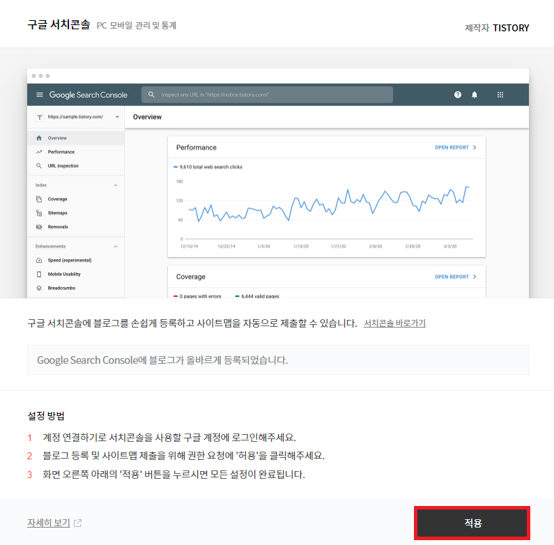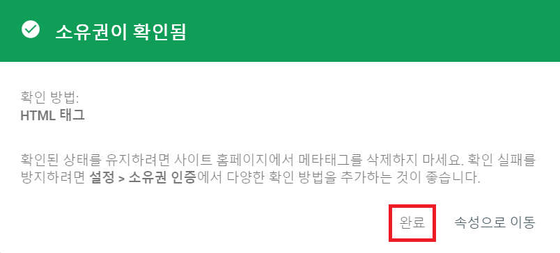 'Google Search Console'에 블로그가 올바르게 등록되었습니다.라고 뜬다