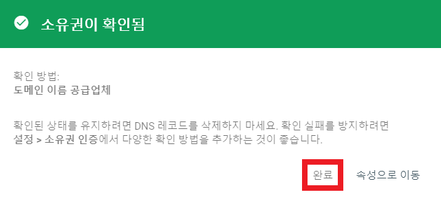 소유권이 확인됐다는 팝업창이 뜨면 완료를 눌러주면 완료된다.