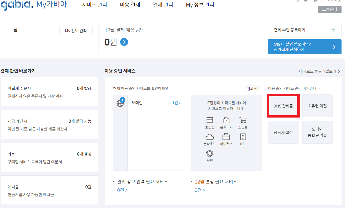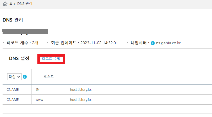 (본인은 가비아 도메인을 이용)
