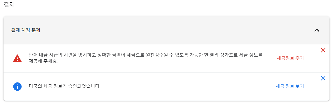 미국 세금 정보를 승인 받았는데 아직도 결제 계정 문제가 있다고 한다
