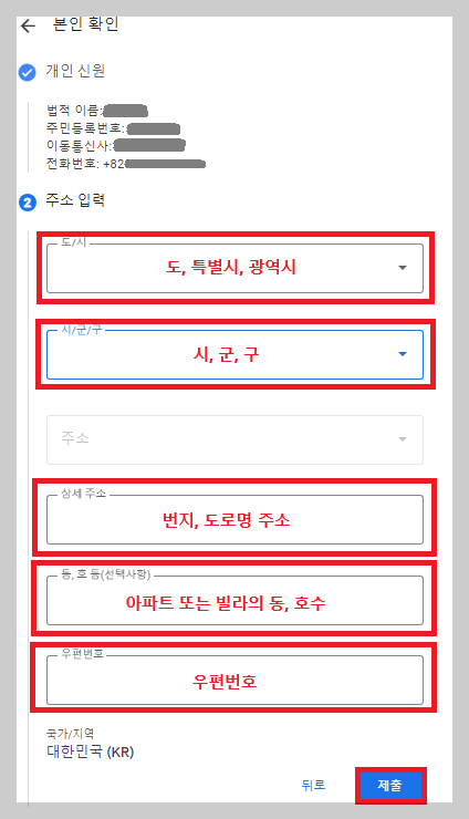 자신의 거주지 주소를 정확하게 입력하는 것이 좋다.)
