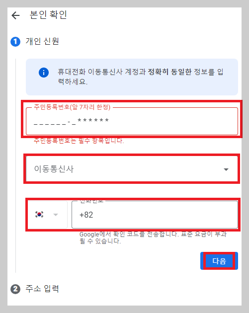 자신의 거주지 주소를 정확하게 입력하는 것이 좋다.)