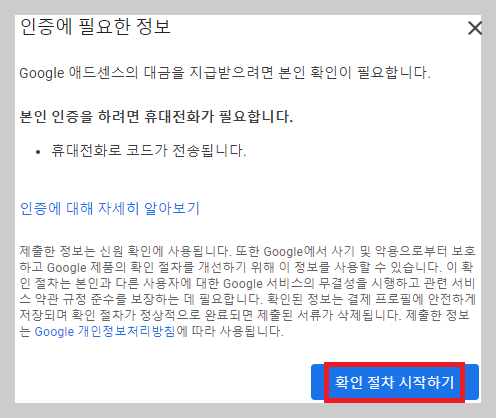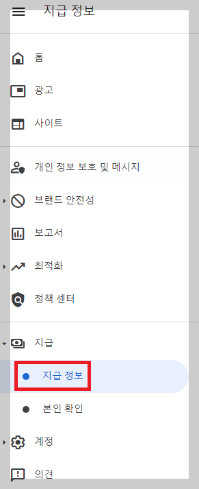 또는 ‘Google 애드센스 홈’에서 [지급] - [본인 확인]을 통해서도 본인 인증 확인이 가능하다.