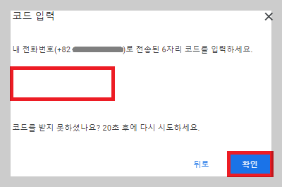 6자리의 인증번호 숫자를 입력한 다음 확인을 누른다.