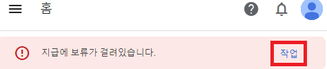 구글 애드센스의 홈화면 상단에 또 느낌표가 떴다.