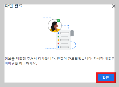 ※ 본인 인증이 완료되면 Google로 부터 인증이 완료 메일이 온다.