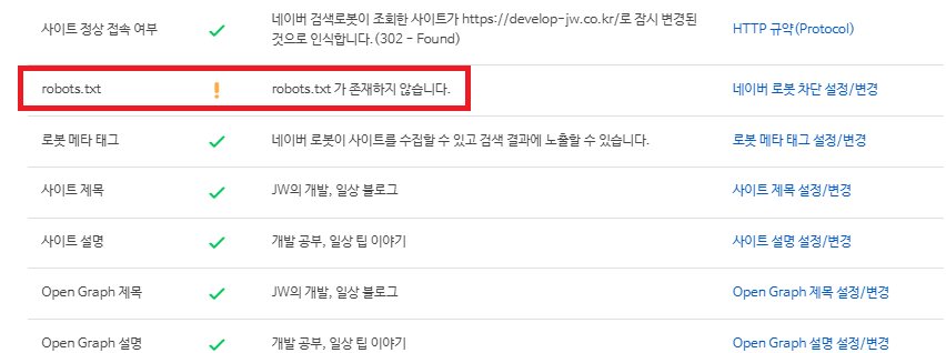 네이버 서치 어드바이저에서 사이트를 등록했는데 네이버 robots. txt가 존재하지 않습니다 라고 뜰때