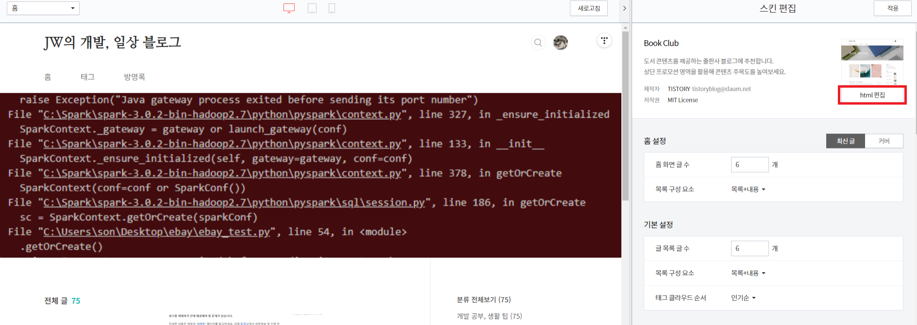 10. 오른쪽 상단의 html 편집을 클릭한다.