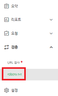 6. 웹마스터 도구 / 요약 페이지의 왼쪽 메뉴에서 검증 → robots.txt를 클릭한다.