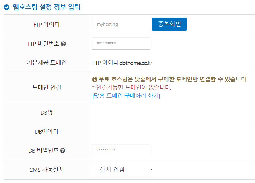 -> 닷홈호스팅에서 회원가입한 아이디와 비밀번호로 로그인