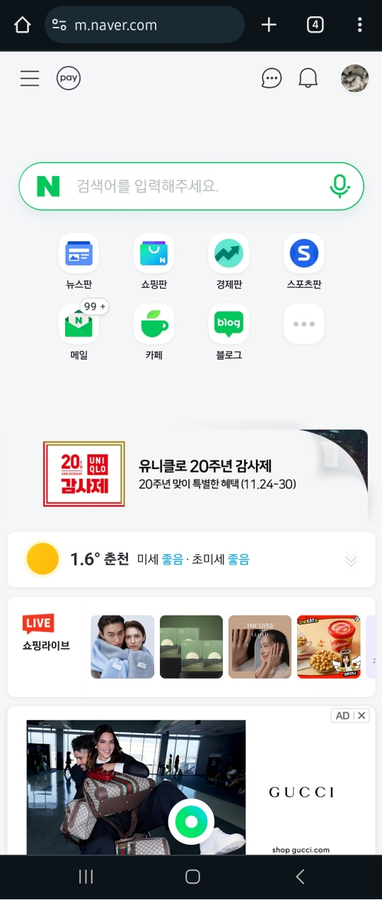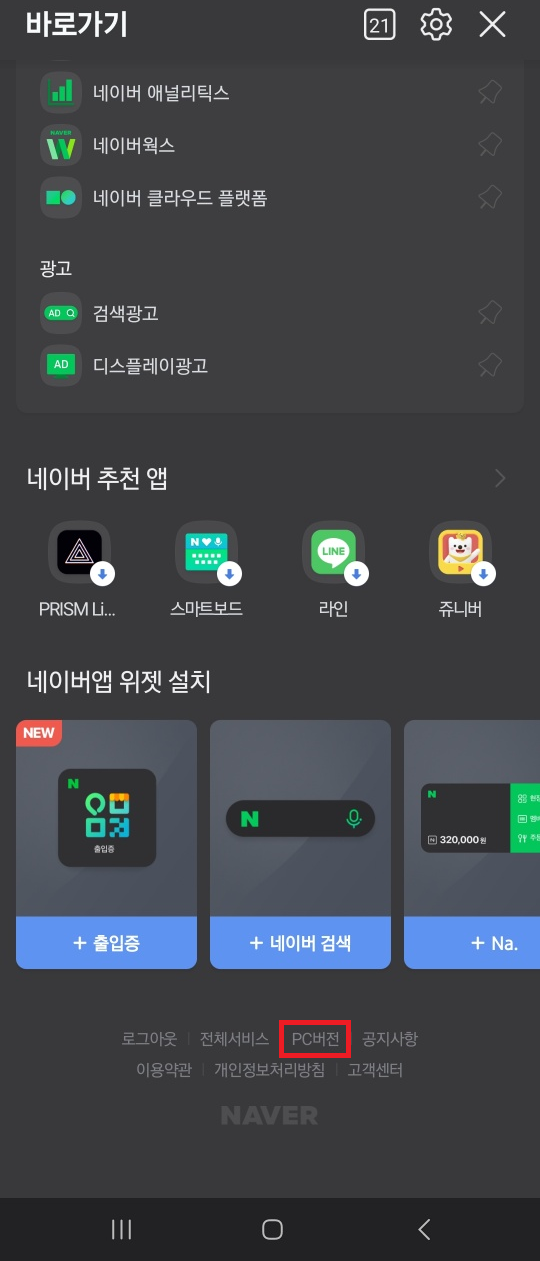 모바일 네이버 앱이나 크롬을 사용하다 보면 URL로 검색해야 할때 네이버를 PC버전으로 봐야할때가 있지만 그냥 보기에는 PC버전으로 바꿀수 있는게 잘 보이지 않는다. 그래서 핸드폰으로도 PC버전으로 네이버에 접속하는 방법을 준비했다.
