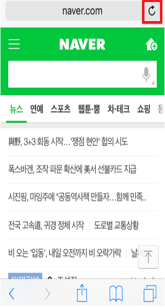 2) 오른쪽 상단 사이트 주소옆 "새로고침" 버튼을 꾹 누르고 있는다.