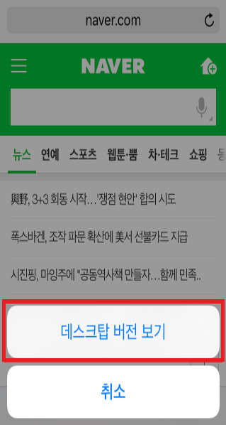3) 데스크탑 버전 보기를 누르면 PC버전으로 화면이 바뀌게 된다.