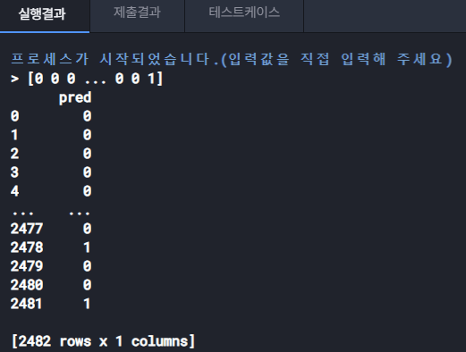 ㉣ 평가용 데이터 개수와 예측 결과 데이터 개수 일치 : 2,482개