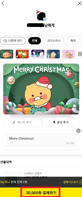 ③ 선물할 금액을 선택하고 선물하기를 누른뒤