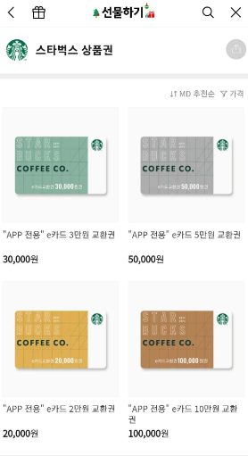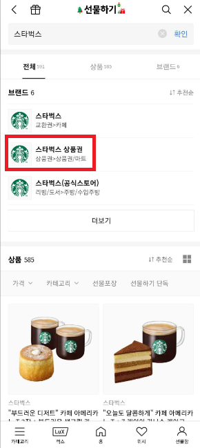 입력한뒤 아래의 결과 중에서 스타벅스 상품권을 클릭한다.