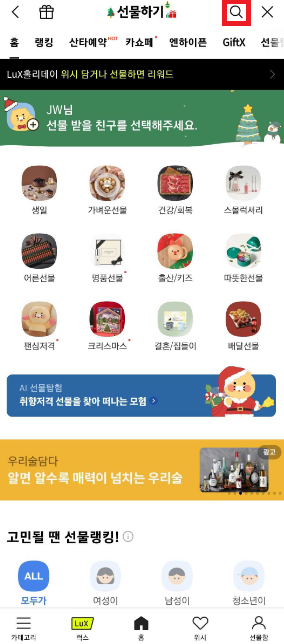 더보기 메뉴를 누르고 선물하기를 누른다.