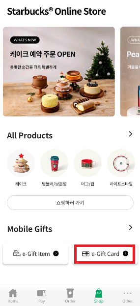 e-Gift Card를 누른다.