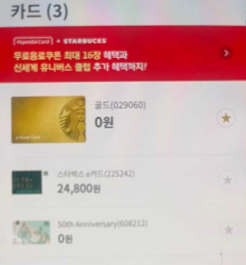 스타벅스 기프트 카드나 상품권등을 요즘은