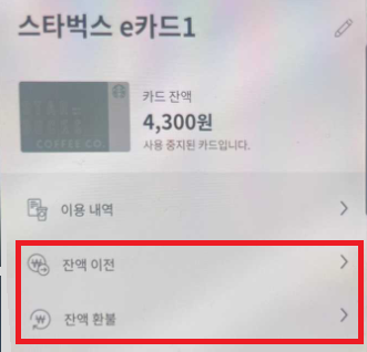 스타벅스 상품권 카드, e카드, 모바일 상품권, 기프트카드, 기프티콘, 교환권 잔액 남았을때 잔액 이전, 환불, 소진