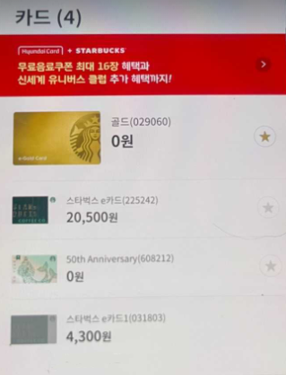 스타벅스 기프트 카드나 상품권등을 요즘은
