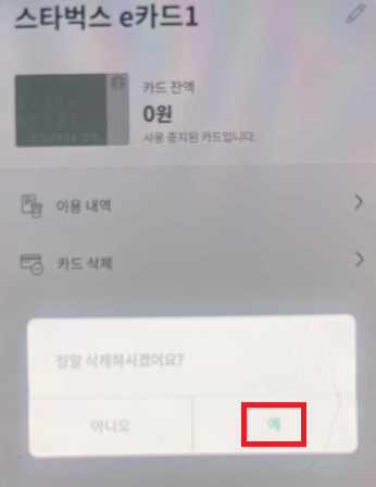 카드는 사용할 수 없기 때문에 삭제하는 것이 보기에도