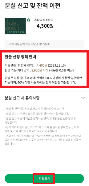 환불 정책을 확인 한 뒤 잔액이전이나 환불을 하려면