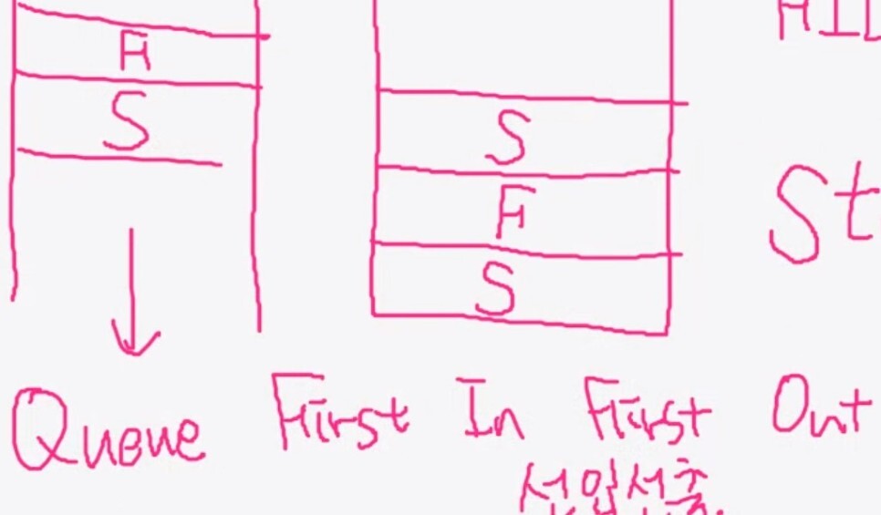 - 큐는 들어올 때 rear로 들어오지만 나올때는 front부터 빠지는 특성