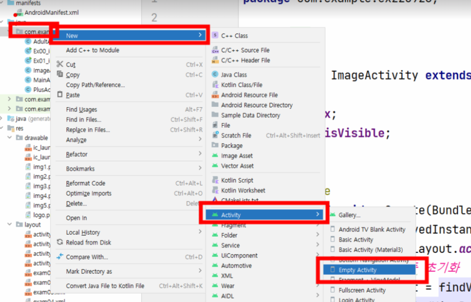※ Activity -> Activity로 이동: Intent 객체 사용