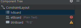 - board 화면의 ID: - lvBoard: 입력한 문자열이 게시되는 리스트 뷰