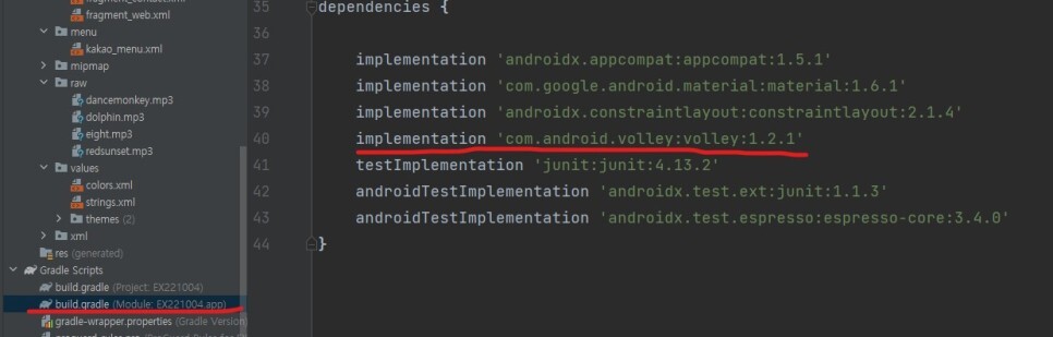 - implementation 'com.android.volley:volley:1.2.1' 확인