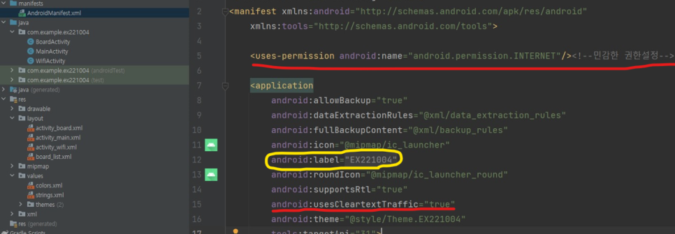 ※ 네트워크 통신을 하기위서는 처음에 AndroidMainfest.xml 파일에서 인터넷 설정이 필요하다