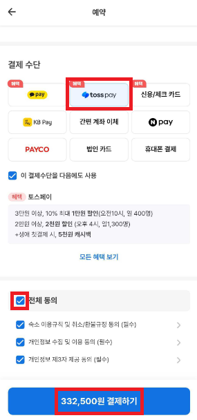 토스페이 10% 할인을 받고 322500원에 예약이 됐다!
