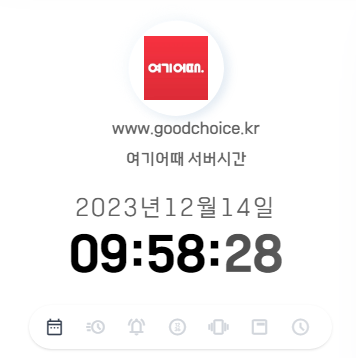 타임몬닷컴에서 여기어때 (www.goodchoice.kr) 서버시간을 초단위로 정확하게 확인해 보세요.
