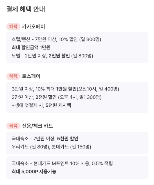 카카오페이를 이용한 숙박 할인을 받는다면 만원씩