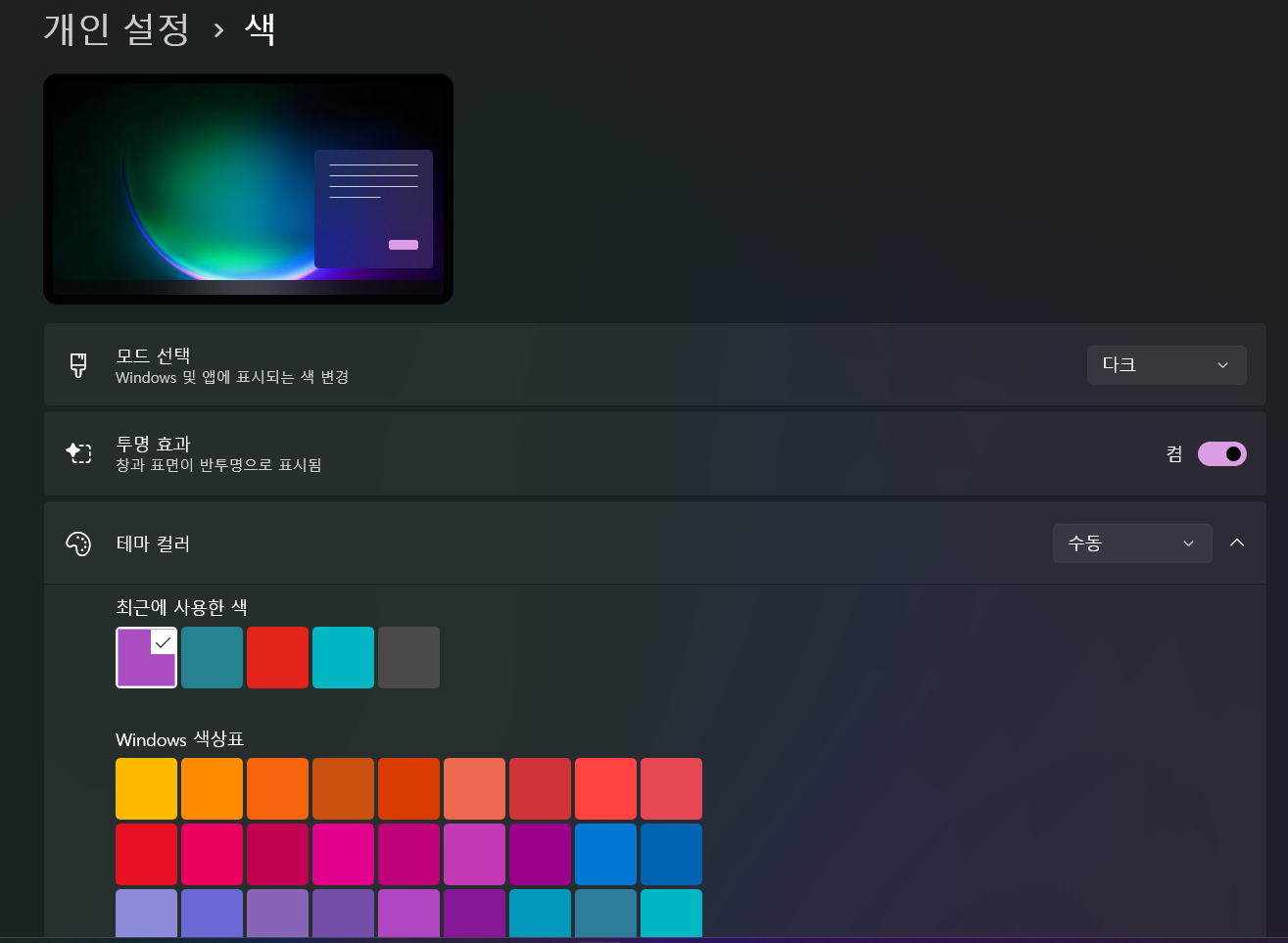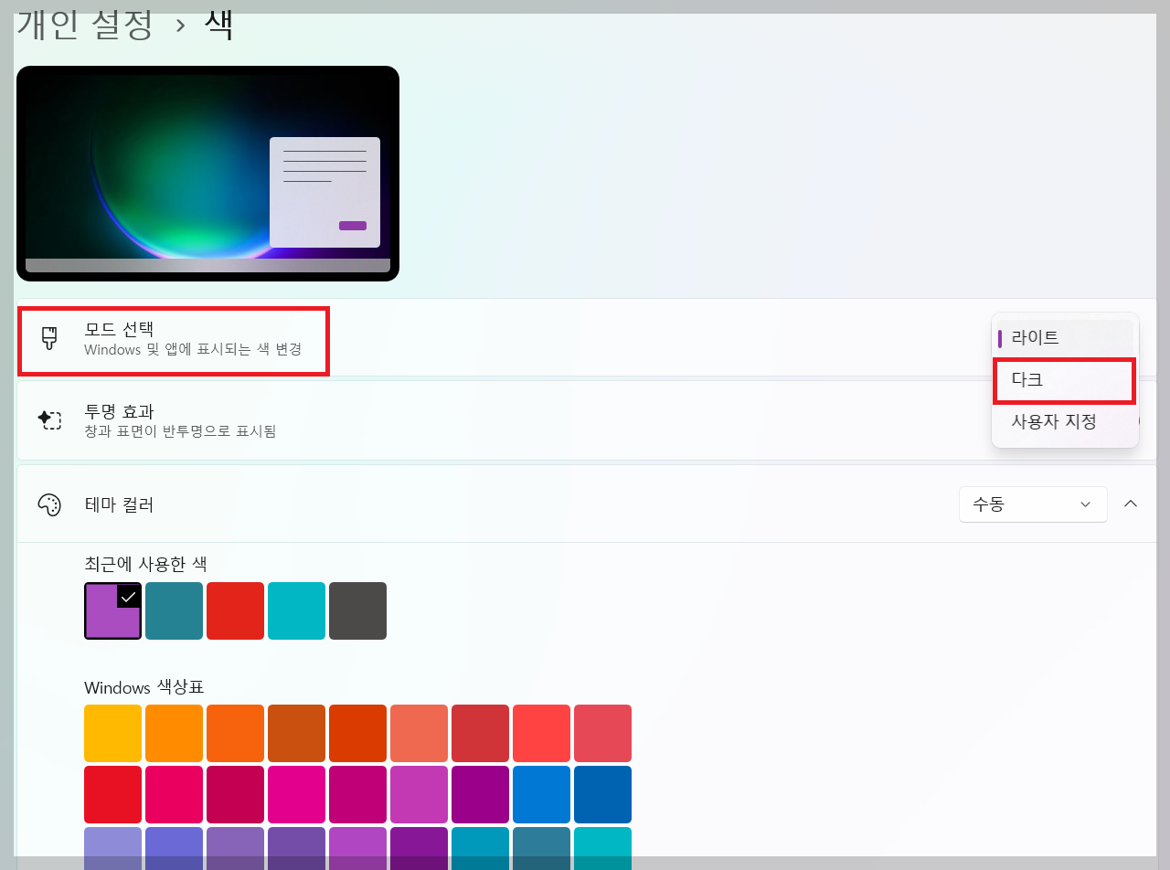 윈도우창 시스템 다크 모드로 변경/해제 하는 법