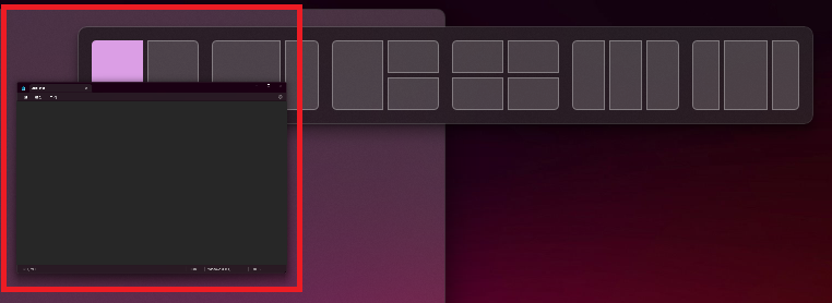 ① 분할하려는 창을 잡은채로 화면 상단의 중앙부로 이동하면 상단에서 분할 화면들이 종류별로 나오게 된다.
