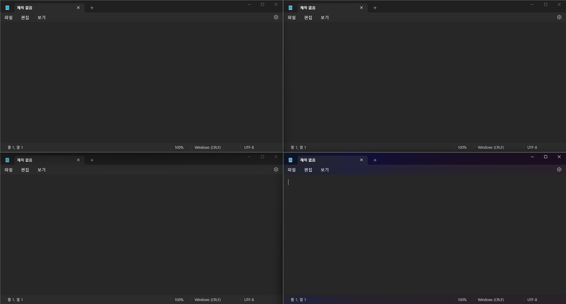 ② [ 윈도우키 + ← ↑, → ↑, ← ↓ , → ↓ ]를 사용해 화면 4분할(키두개를 동시에 누름)
