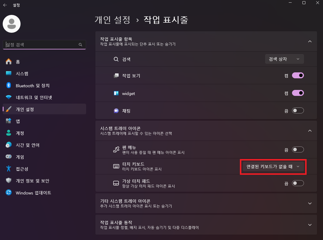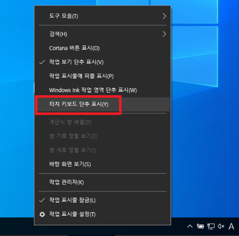 3. 작업표시줄에 "터치키보드" 아이콘을 만들어 사용하기