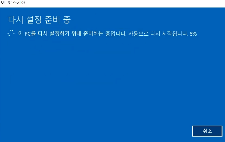 다시 설정 준비중이라는 메시지와 함께 포맷이 시작된다.