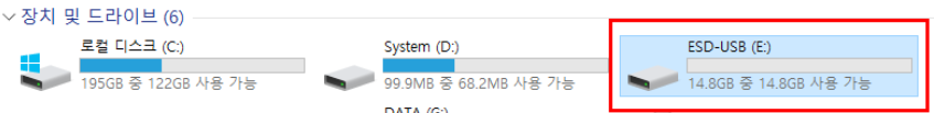 10) USB 파일에 위 같이 파일들이 나온다 USB 드라이브에 해당 파일들이 잘설치된 것이다.