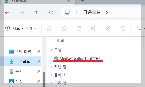 2) 다운로드된 "MediaCreationTool22H2.exe" 실행파일을 실행한다.