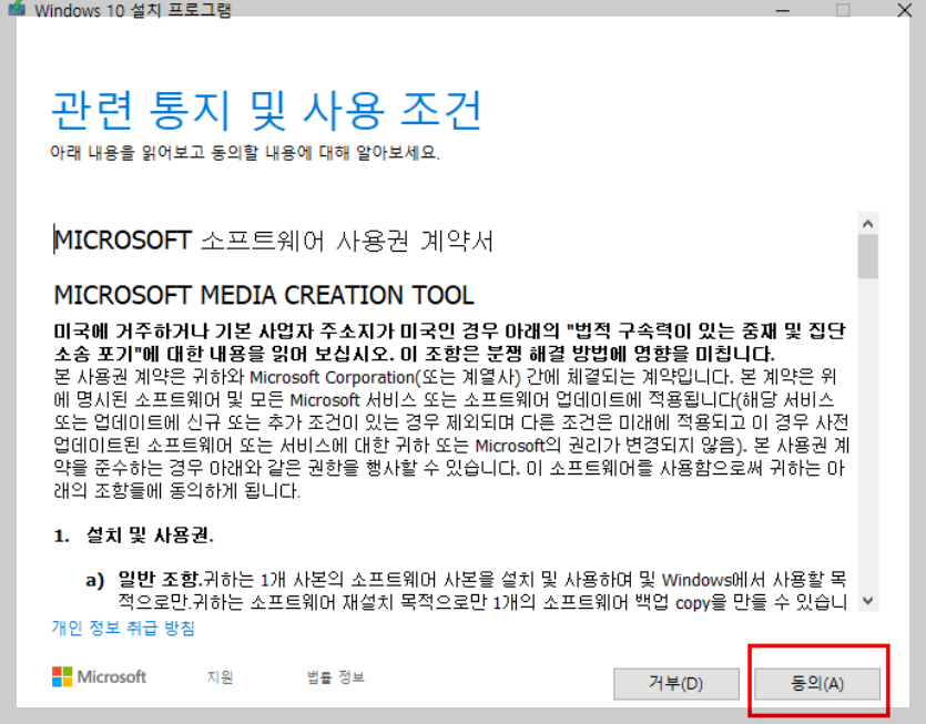 1) 윈도우10 파일을 위의 사진에 빨간색 네모를 눌러 다운로드 한다.
