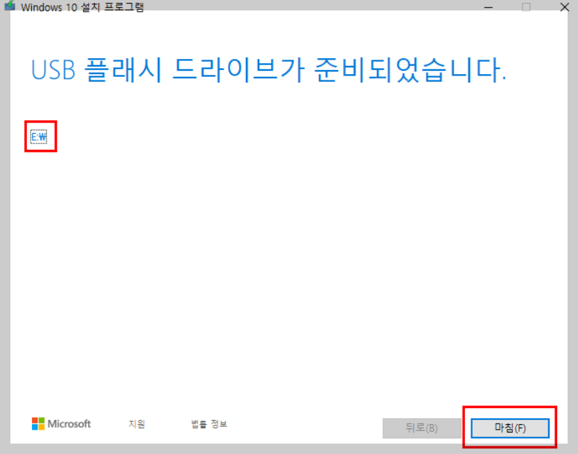 9) 다운로드와 미디어 만들기가 끝나면 USB플래시 드라이브가 준비 되었다고 나오면서