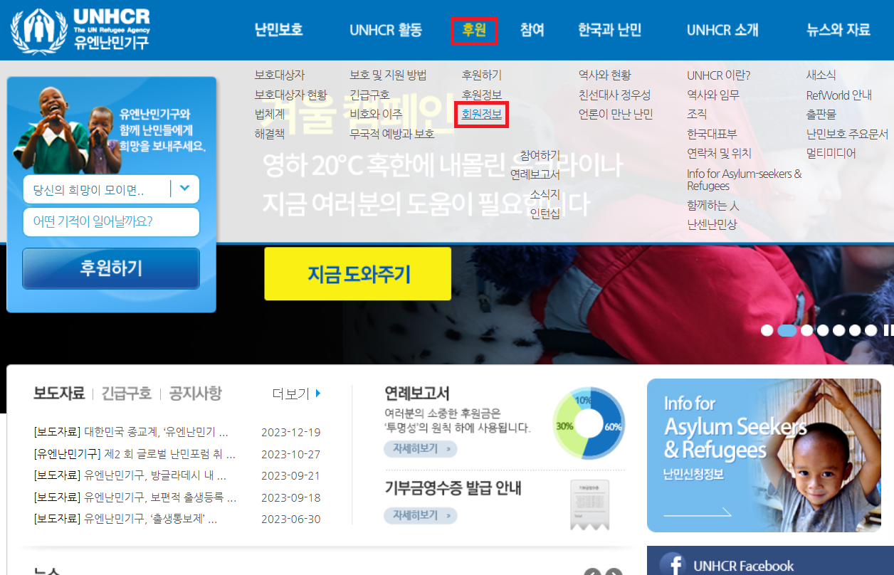 홈페이지에서 유엔 난민 기구 후원 취소 방법