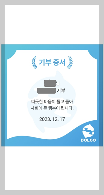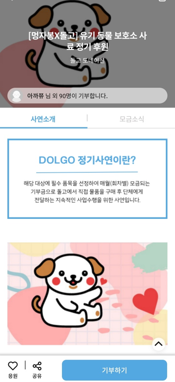 기부는 자기가 하고 싶을때 해야 진정한 기부라고 생각한다. 나는 "돌고도네이션"이라는 SK의 이승환 대표가 운영하는 기부 앱을 통해 유기 동물 사료를 후원하고 있다. 기부금을 가지고 아이들에게, 동물보호소에 무엇을 샀는지 무엇을 지원했는지 사진으로 볼수도 있고 영수증을 통해 투명한 기부 문화를 만들어가고 있어서 믿음도 가고 무엇보다 어떤 곳에 어떻게 쓰였는지 사진을 통해 볼 수 있기 때문이다.