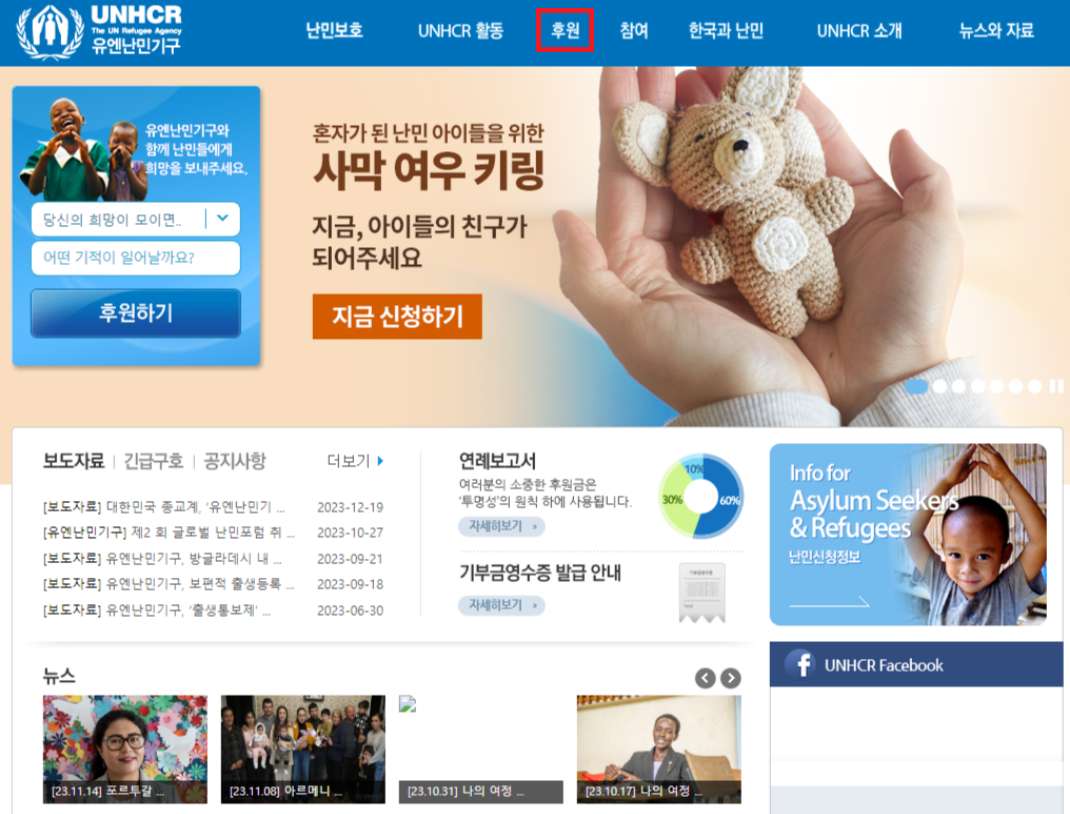 홈페이지에서 유엔 난민 기구 후원 취소 방법