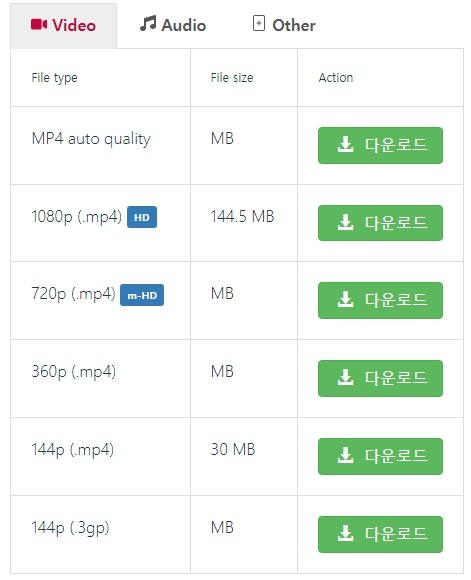 사용방법: 위의 사이트의 검색창에 영상 링크를 붙여넣기한 다음 시작 버튼을 누르고 비디오나 오디오 영상의 화질을 선택한 다음 다운로드를 누르면 된다.