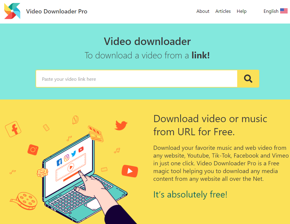 Video Downloader Pro 또한 웹상에서 비디오나 오디오를 바로 다운로드 할 수 있는 사이트이고 페이스북, 인스타그램, 트위터, 유튜브등을 지원한다. 무료로 HD화질까지 다운로드 할 수 있다.