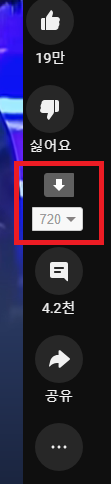 5. 설치가 잘됐다면 아래와 같이 다운로드 버튼이 영상 아래 좋아요와 싫어요 버튼 옆에 생기게 된다.